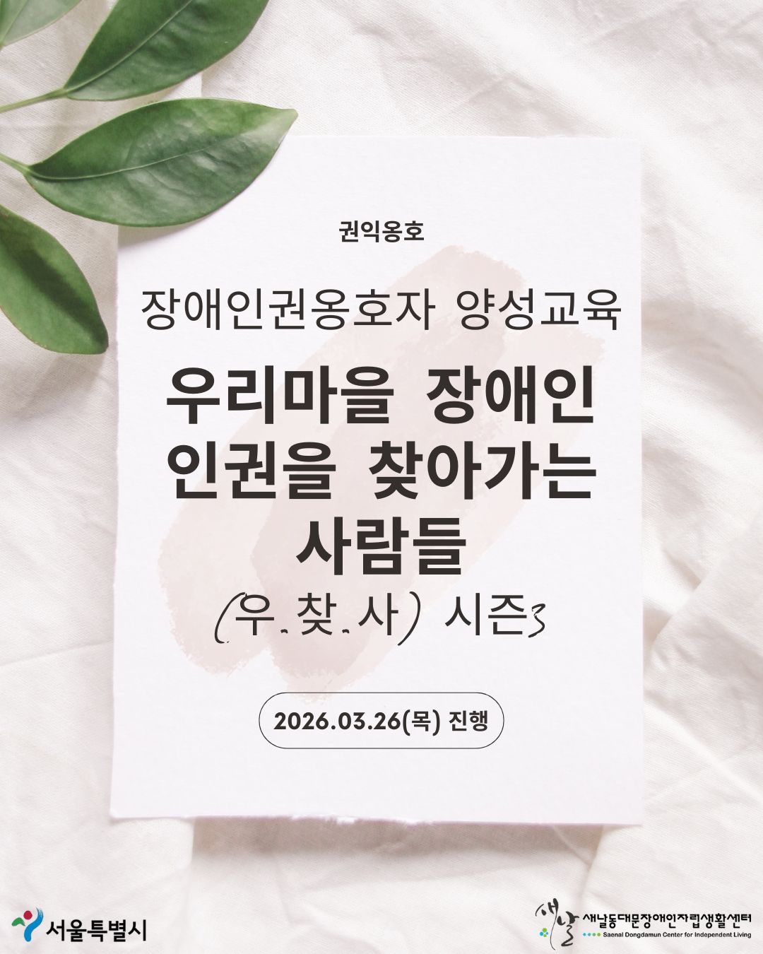 ±ÇÀÍ¿ËÈ£) 2026.03.26(¸ñ) Àå¾ÖÀαǿËÈ£ÀÚ ¾ç¼º±³À° ¿ôã»ç ½ÃÁð3 ±³À°(1ȸ) ÁøÇà